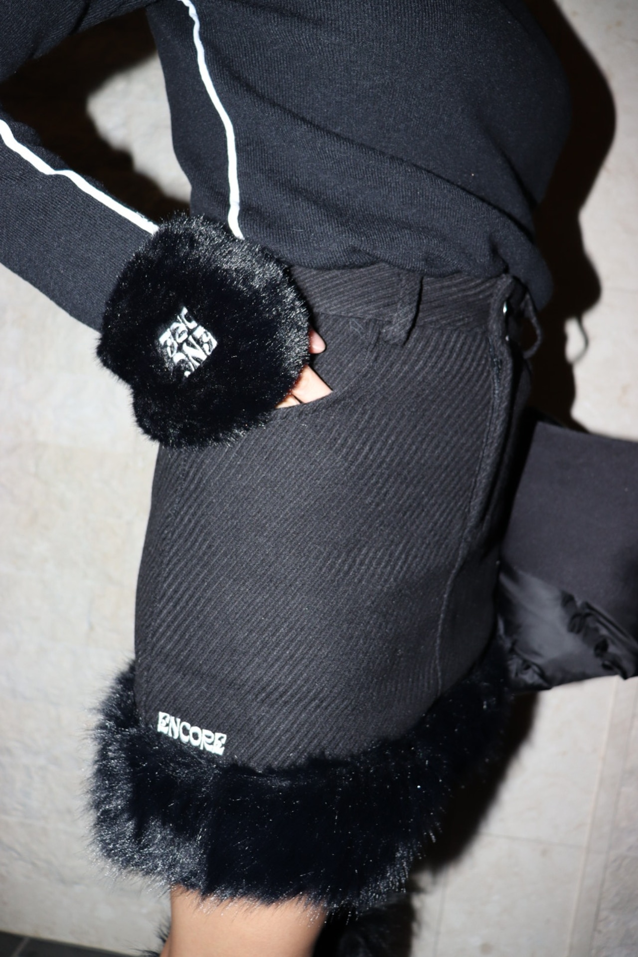 冬のスタイリングを引き立てる Fur Trim Skirt。